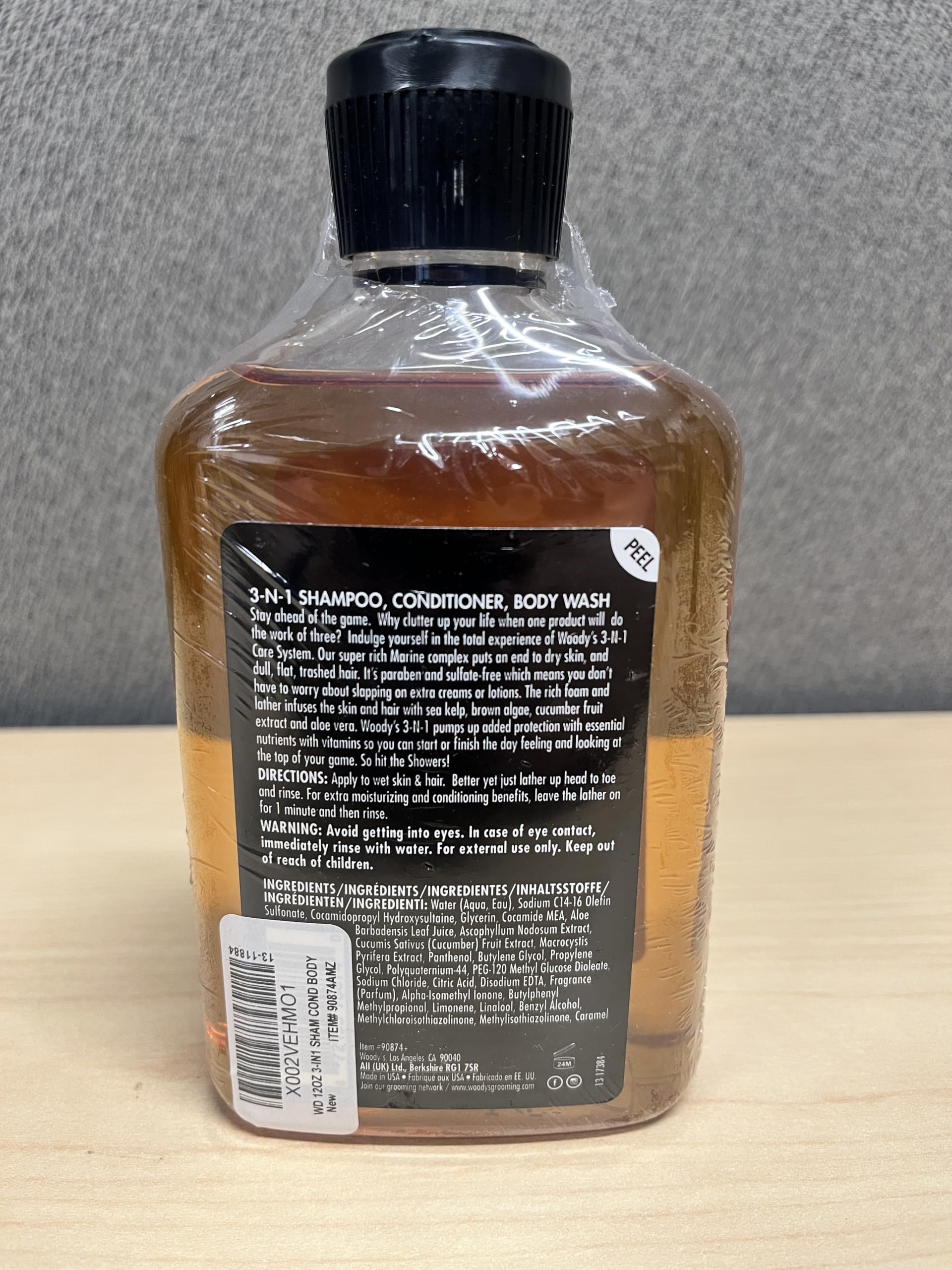 Woody's 3-in-1 Shampoo, Conditioner & Body Wash for Men, Travel-Size, All-in-One Hair & Body Cleanser for Daily Use, 12 fl oz