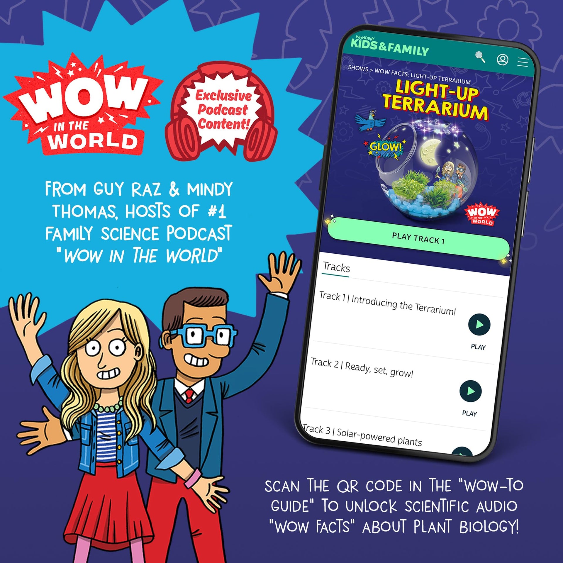 - EXCLUSIVE AUDIO CONTENT - The #1 family science podcast “Wow in the World” hosts Guy Raz & Mindy Thomas bring you & your family on a bonkerballs journey through the science behind plant biology, UV light, bioluminescence, and more! Audio “Wow Facts” await you, accessible only within the pages of the “Wow-To Guide!”