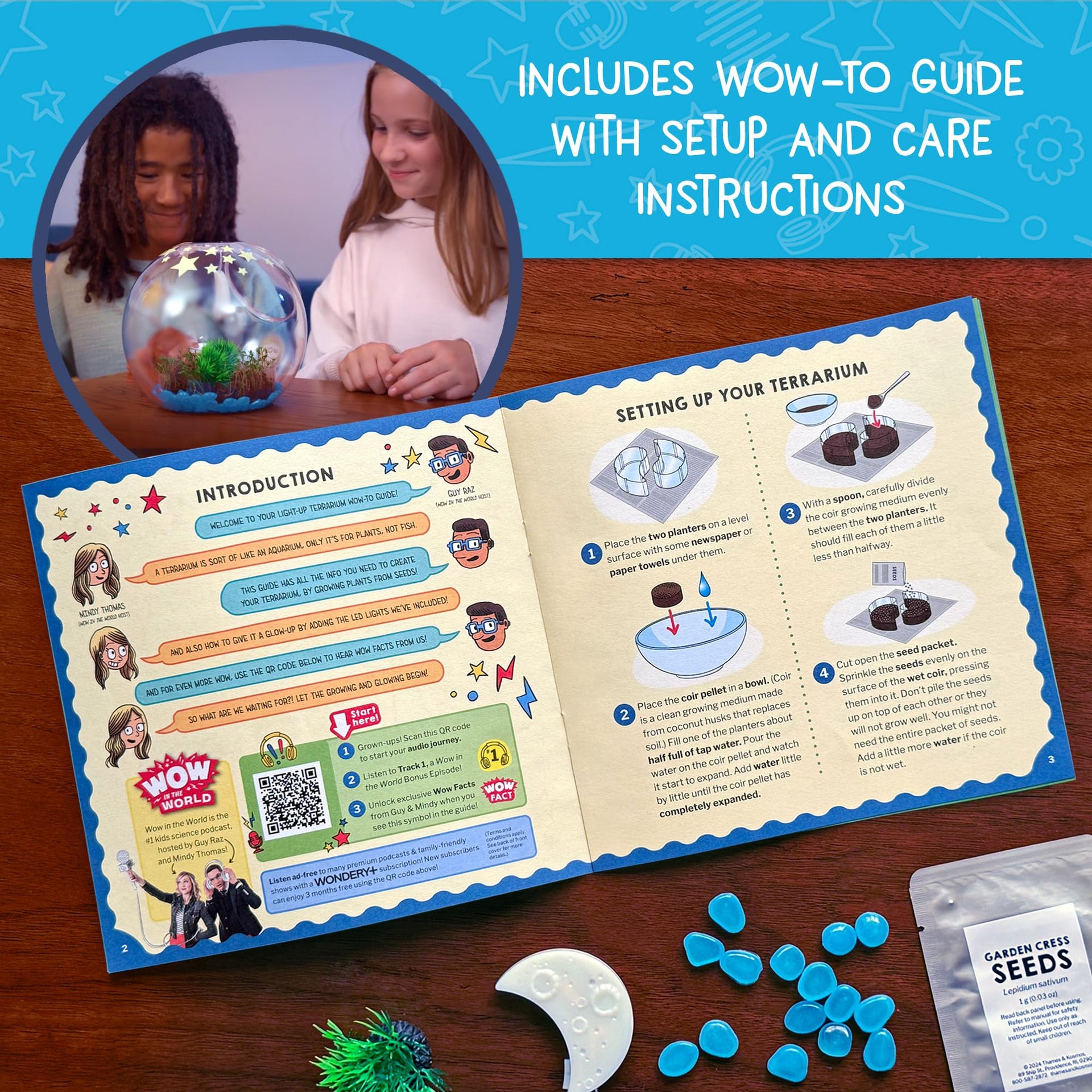 - SCIENCE OF THE NATURAL WORLD - The 8-page, illustrated “Wow-To Guide” walks kids (and their grown-ups!) through the process of setting up their terrarium and provides useful “Wow Facts” about plant growth and phosphorescence. It’s the perfect STEM gift for the entire family!