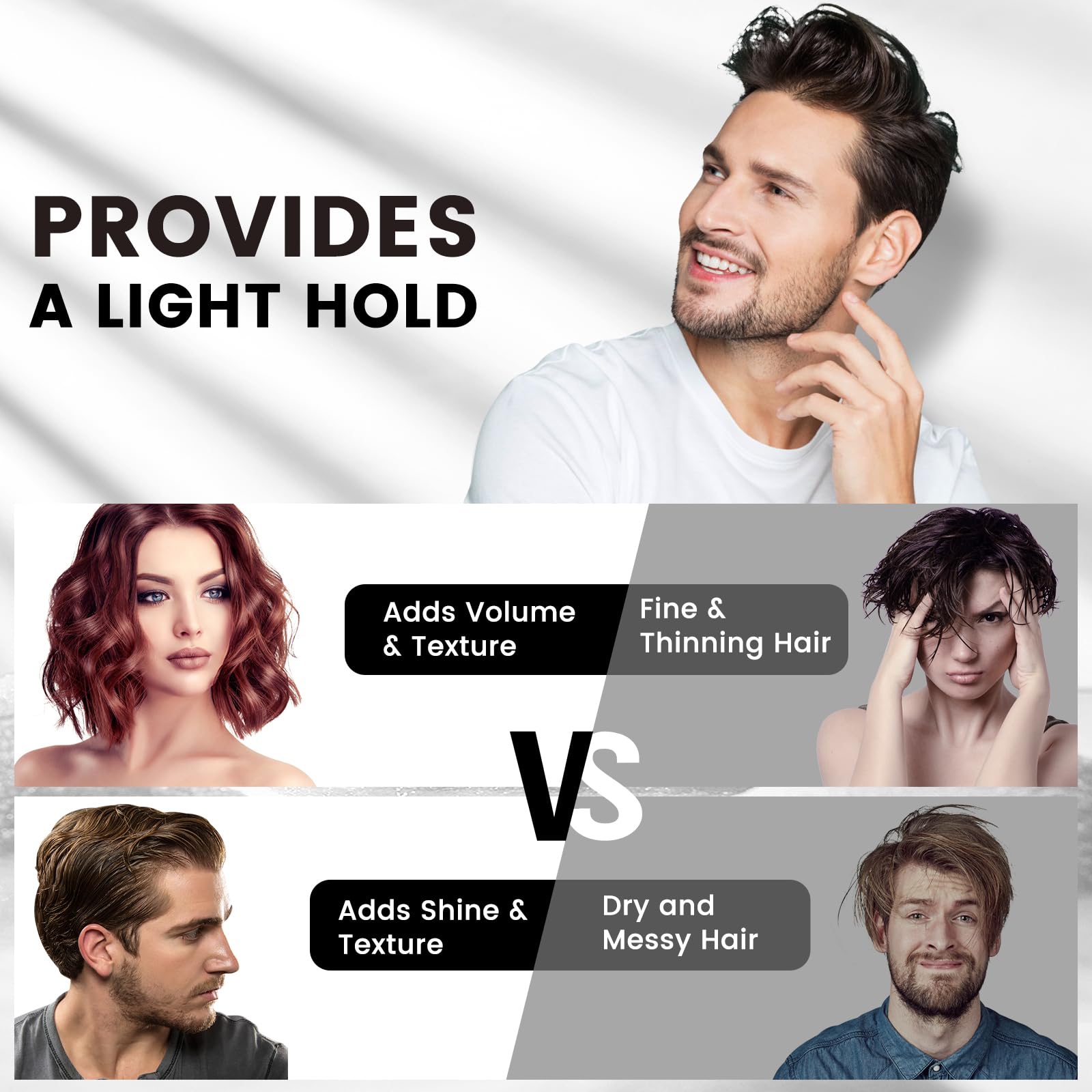 - 【FLUFFY & SOFT HOLD】 Maintains a natural and soft hairstyle while providing volume, without making the hair stiff or clumpy