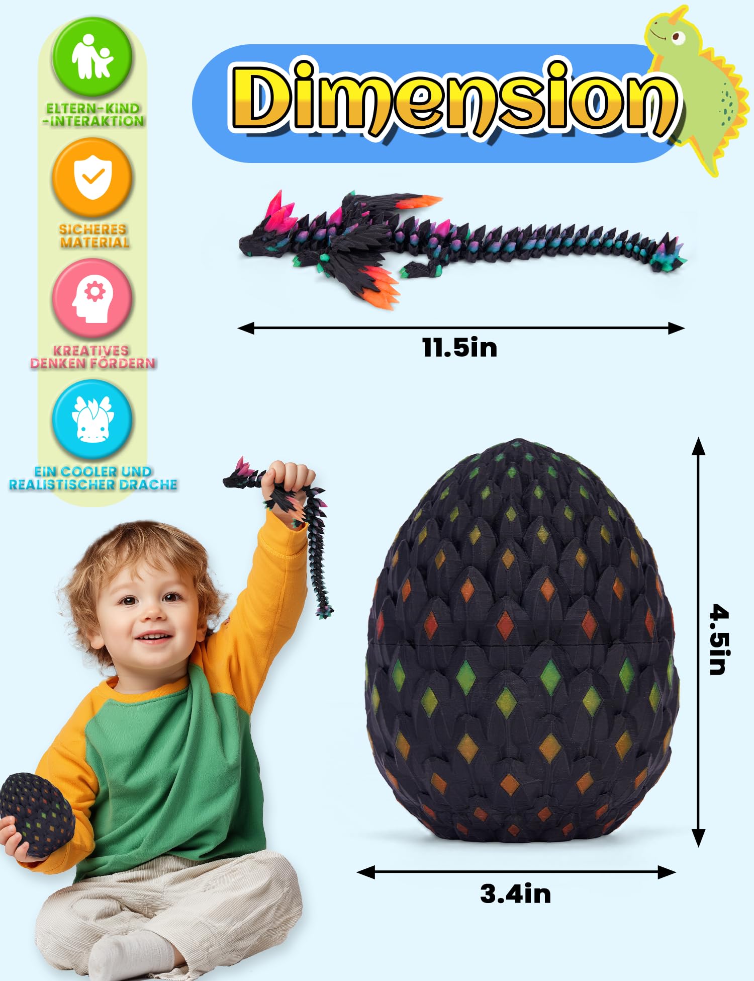 YILCER 3D Printed Glow-in-the-Dark Dragon Eggs with Wings, Articulated Fidget & Dinosaur Toys for Teens, Boys & Girls – Rainbow