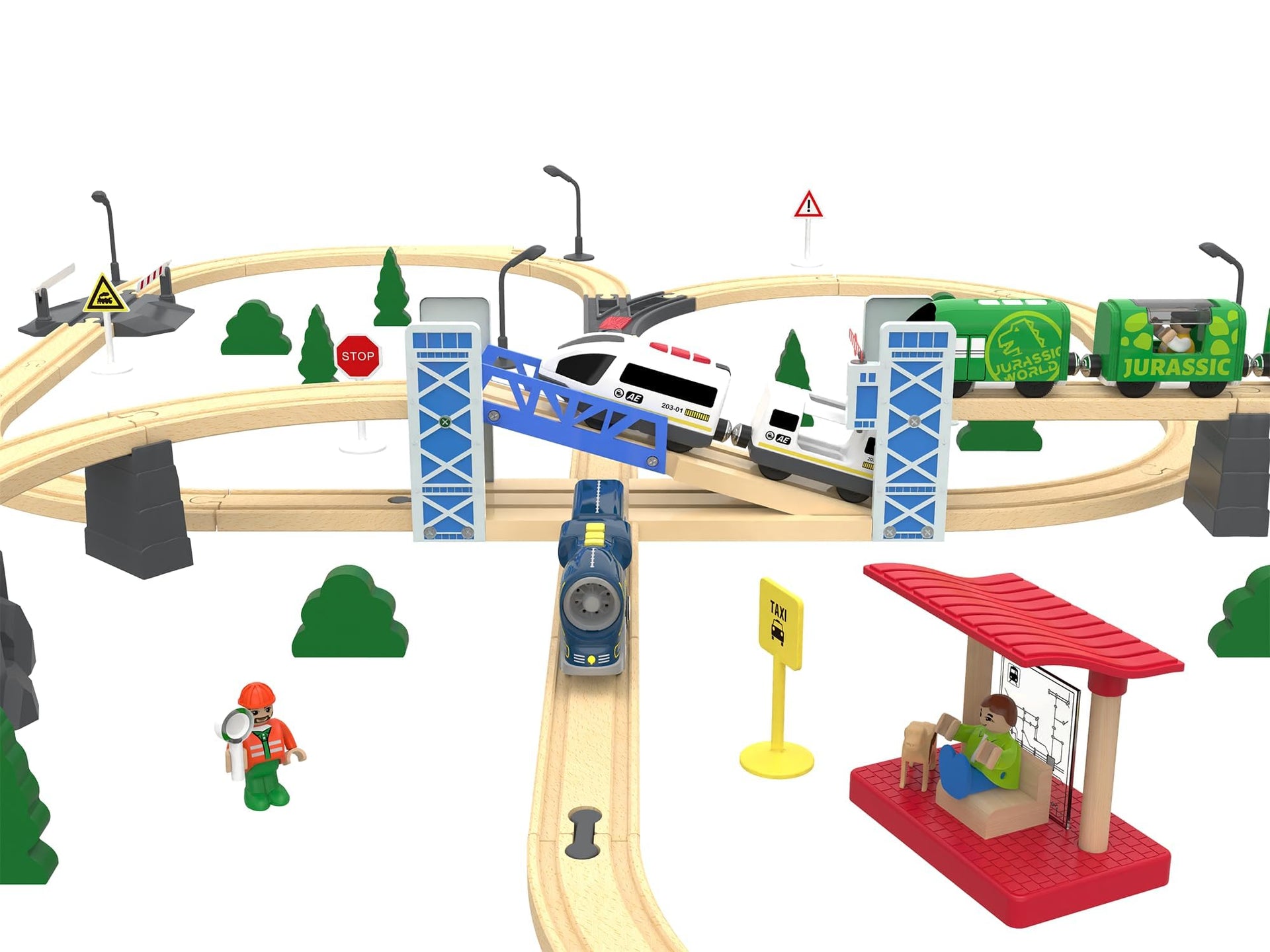 Z MAYABBO Wooden Train Set Accessories Wood Railway Bridge for Railroad Tracks, 2-Level Overpass Compatible for All Railway Tracks System